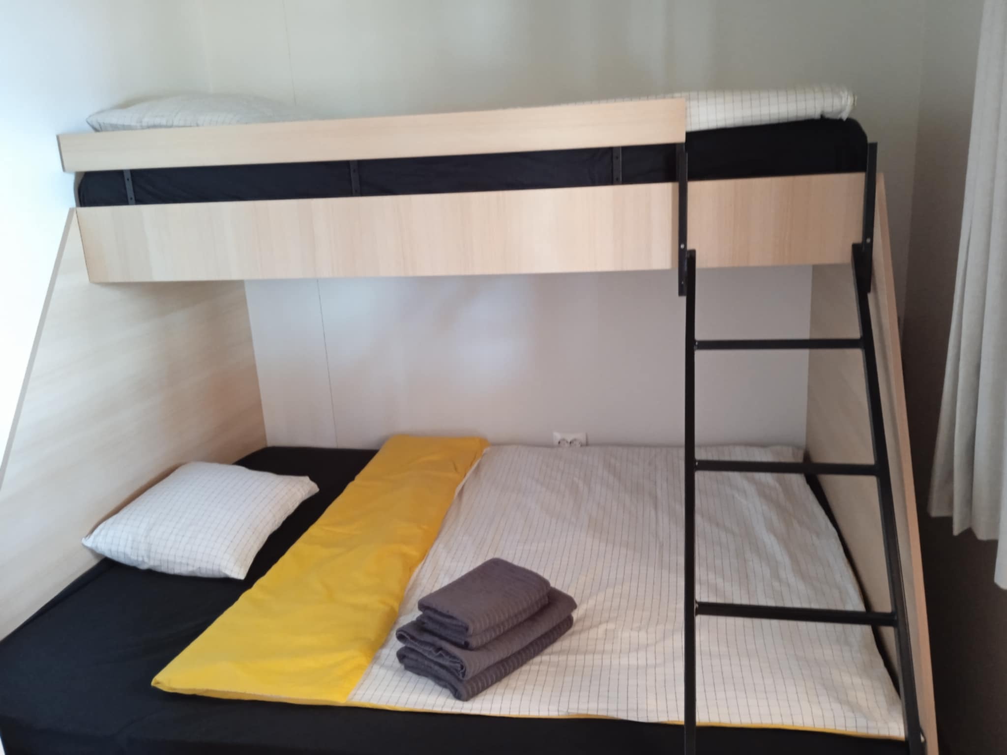 2 spalnici z zakonskima posteljama + 1 ležišče 200×90