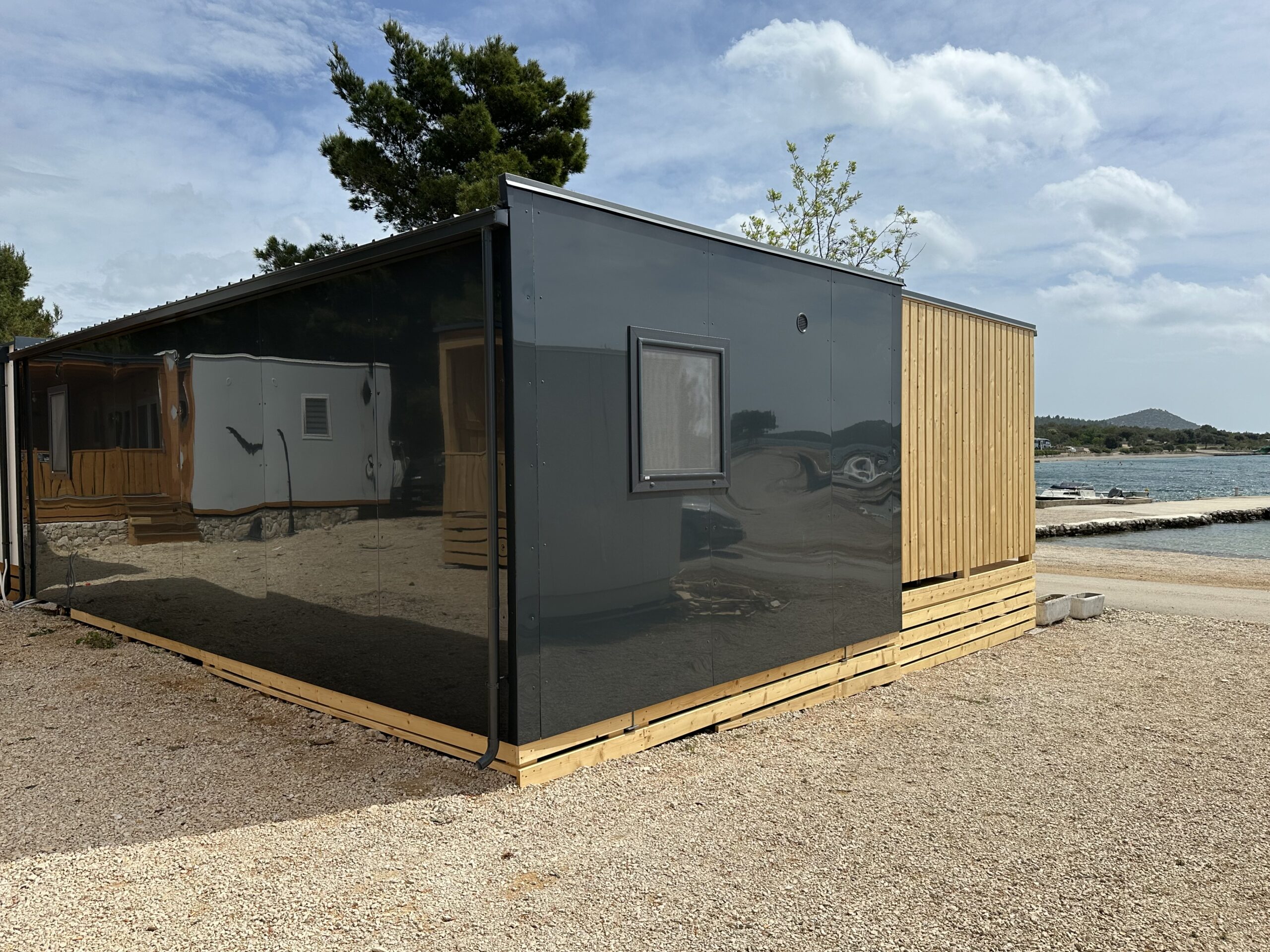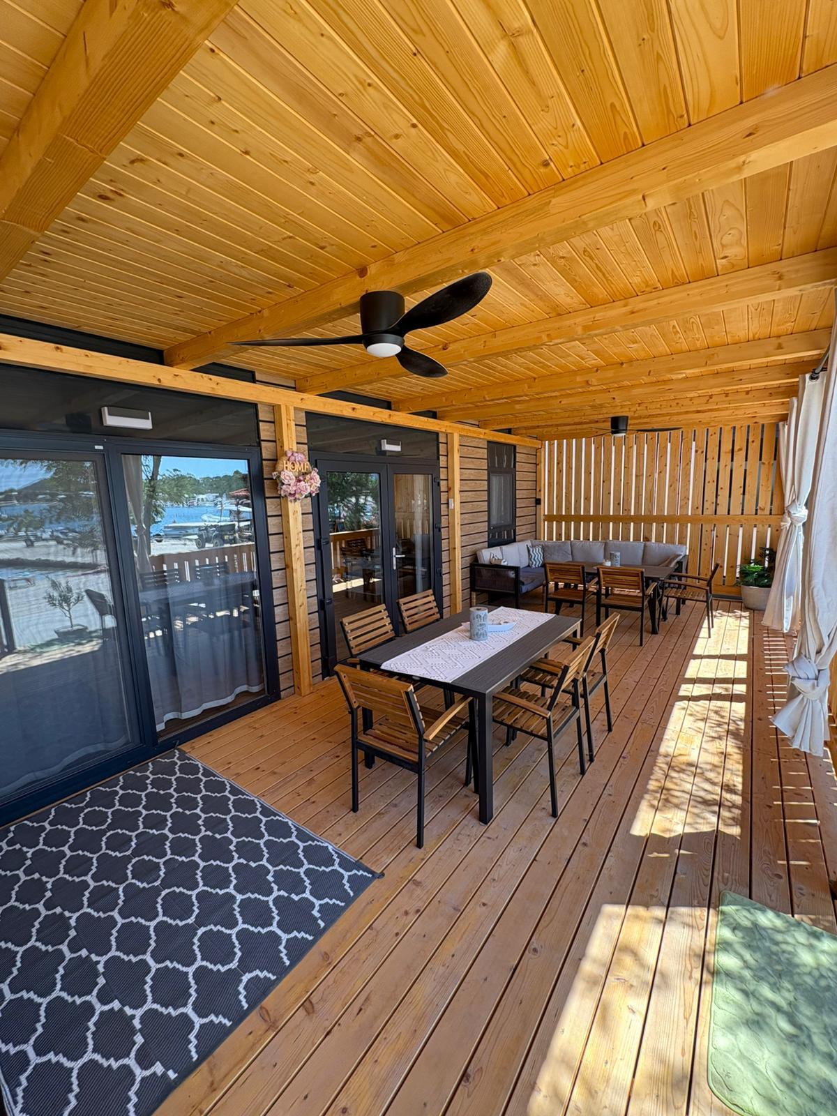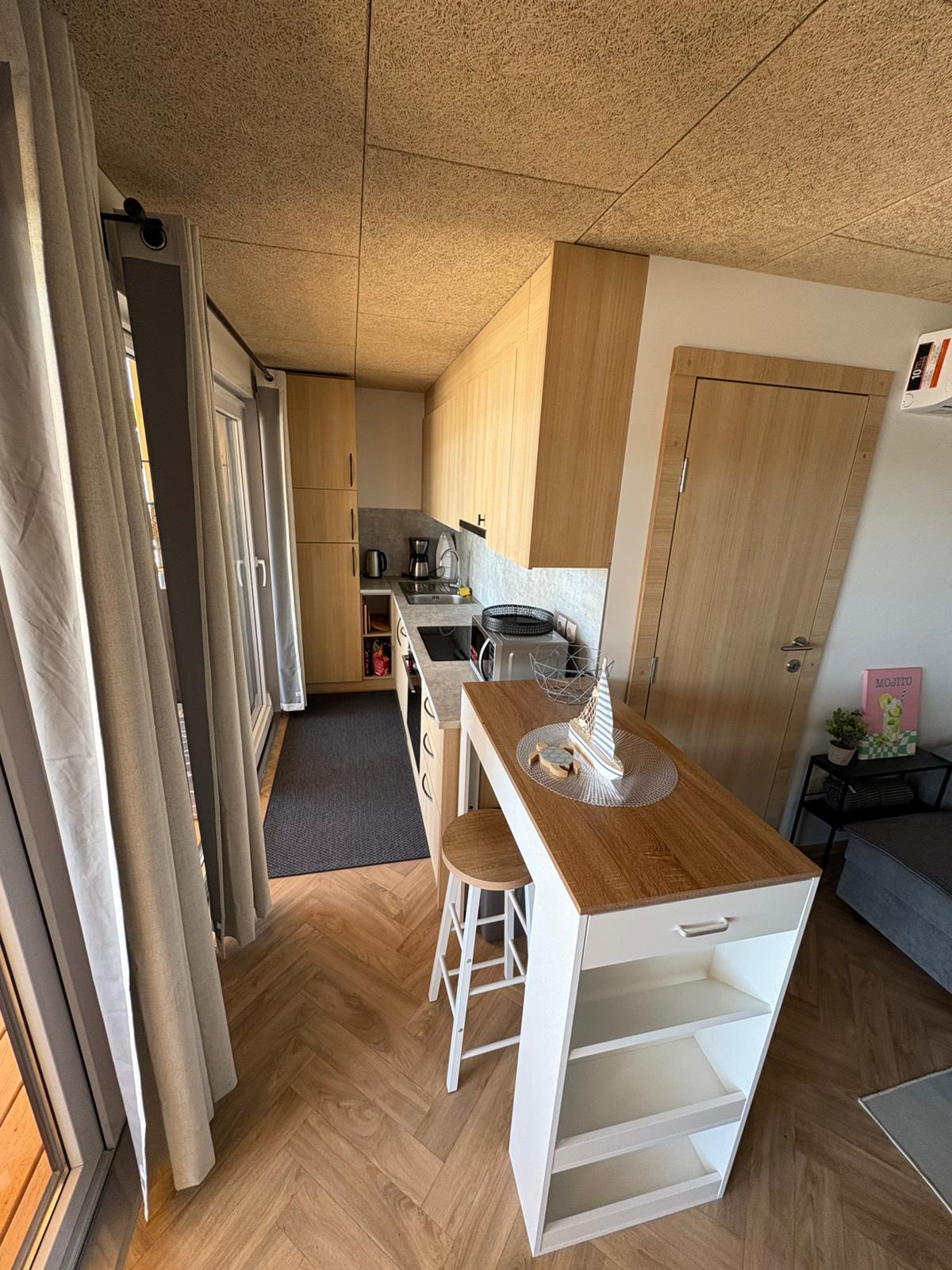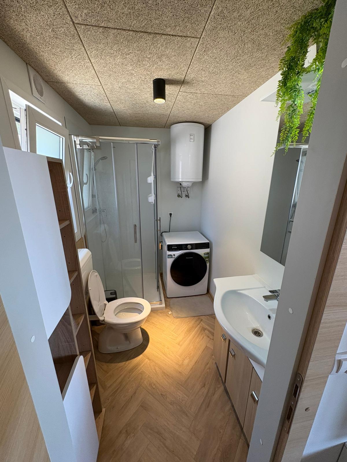 Popolnoma opremljena mobilna hišica z naslednjimi lastnostmi: